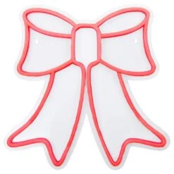 Freshen up your holiday decor with this modern neon style red bow silhouette. Vibrant bulbs add light and color. The perfect statement piece for walls or windows. Easy installation makes Christmas decorating a breeze. Features: Color: red. One-sided design. Bulbs stay cool to the touch. LED lights use 90% less energy. 6 ft. lead cord. Product Features: Super bright and vibrant tubes. UL certified and approved for indoor use only. Cannot be connected together with other lighted items. Comes ready-to-hang from 2 keyholes on each side. 2 peel and stick hooks included. Class 2 power supply. Powered by USB – power plug included. Input: 100-Volt to 240-Volt 50/60hz. 35 Amp. Output: 5-Volt 1 Amp. Dimensions: 15 in. H x 15 in. W x 75 in. D. Material(s): PVC/wire/metal.