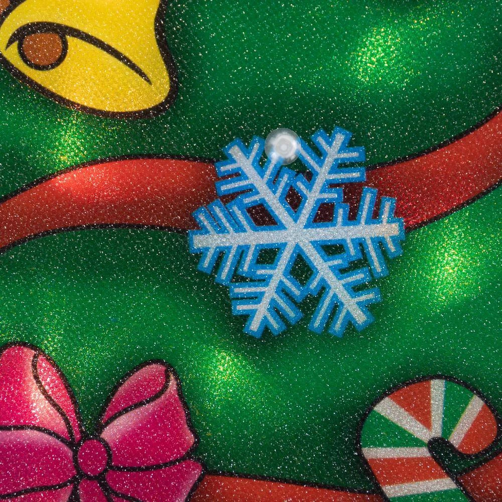 Light up your home this holiday season with this window silhouette. The perfect way to add a festive touch to your holiday decor. This window silhouette is an easy way to impress your friends and family inside and outside of your home. Product Features: Double-sided design of a decorated Christmas tree. Illuminated by 20 clear mini lights. Fully assembled decoration comes in 1-piece. 24 in. white lead cord. Contains 1 plug with end connector allowing you to stack multiple lighted items together (not to exceed 210-Watt). Comes with 1 suction cup for hanging spare replacement bulbs and an extra fuse. UL listed for indoor use. Dimensions: 17.75 in. H in. x 9.5 in. W in. x 0.75 in. D. Material(s): PVC/plastic/glass bulbs/wire.