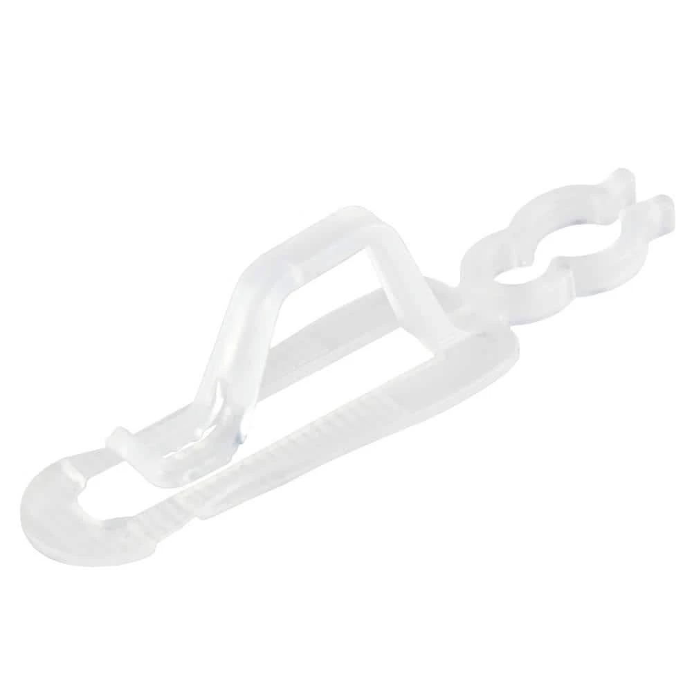 Christmas decorating has never been easier with all the new gadgets on the market. Makes decorating a breeze instead of a chore leaving time for you to enjoy all the holiday fun. Light strings attach to the clear clip through wire guides to securely hold lights with no forcing or twisting. So perfect your grandparents will wish they had these convenient light decorating clips. Product Features: Plastic gutter and shingle clips. The clip is clear in color. Snaps on gutters or slides under shingles. Works with most C7 C9 mini icicle curtain and LED light sets. Can also be used for garland or other decorations. For indoor or outdoor use. Made of weatherproof and reusable material. Not intended for permanent installation; For seasonal use only. Hooks are designed to fit all standard gutters and shingles and work on most roofs. The above shown comes in a set of 50. Dimensions: 3.5 in. L x 0.05 in. W x 1 in. H. Material(s): plastic.