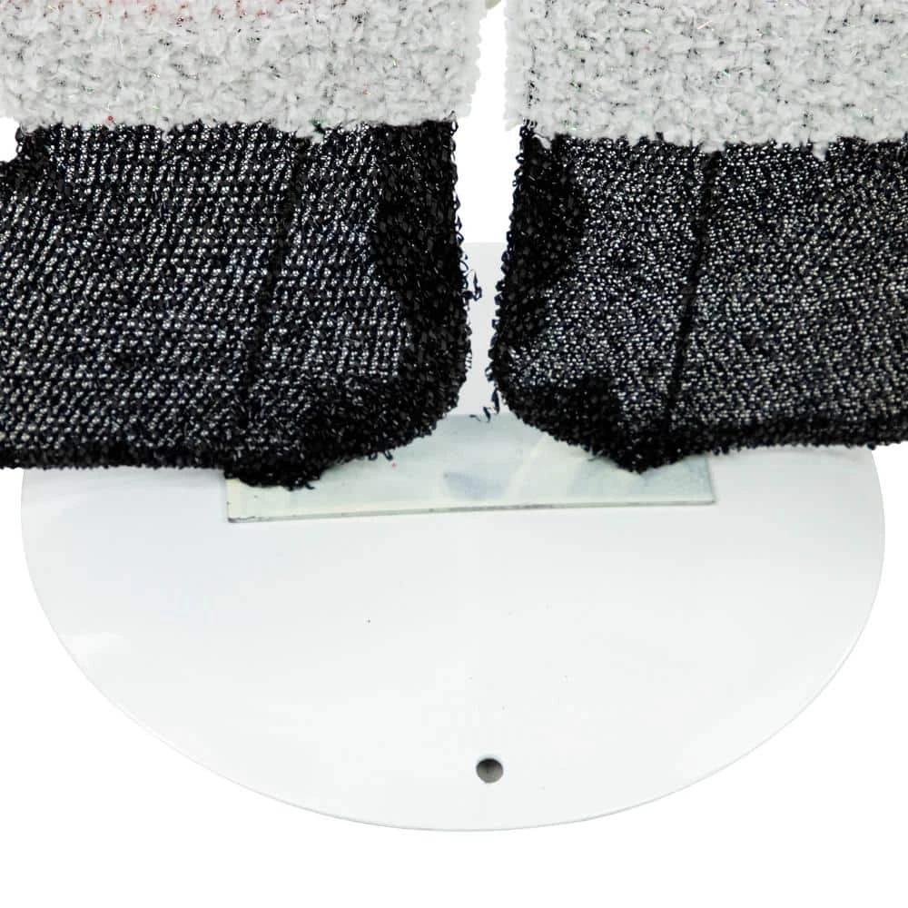 There is no better way to decorate for the holidays than to place a happy Santa in your home. Santa Claus offers the perfect amount of light for your decorations. It will look great on the porch or lawn and can be displayed inside for a whimsical holiday touch. Product Features: Pre-lit with 35 clear lights. Bulb size: mini. One-sided flat design. 69 in. white lead cord. Lighted Santa has a sparkling tinsel body. Santa is dressed in his traditional red suit and black boots. Designed with a plush cotton beard holding Christmas presents. Additional Product Features: If one bulb burns out the rest will stay lit. UL certified and approved for indoor or outdoor use. Comes with replacement bulbs spare fuses and stand. Contains 1 plug with end connector which allows you to stack multiple lighted items together (not to exceed 210-Watt). Wire gauge: 22. 120 volt 60 Hz 0.12 Amp 14.4-Watt. Some easy assembly required. Dimensions: 32 in. H x 14 in. W x 0.25 in. D. Material(s): tinsel/cotton/metal/glass bulbs/wire.