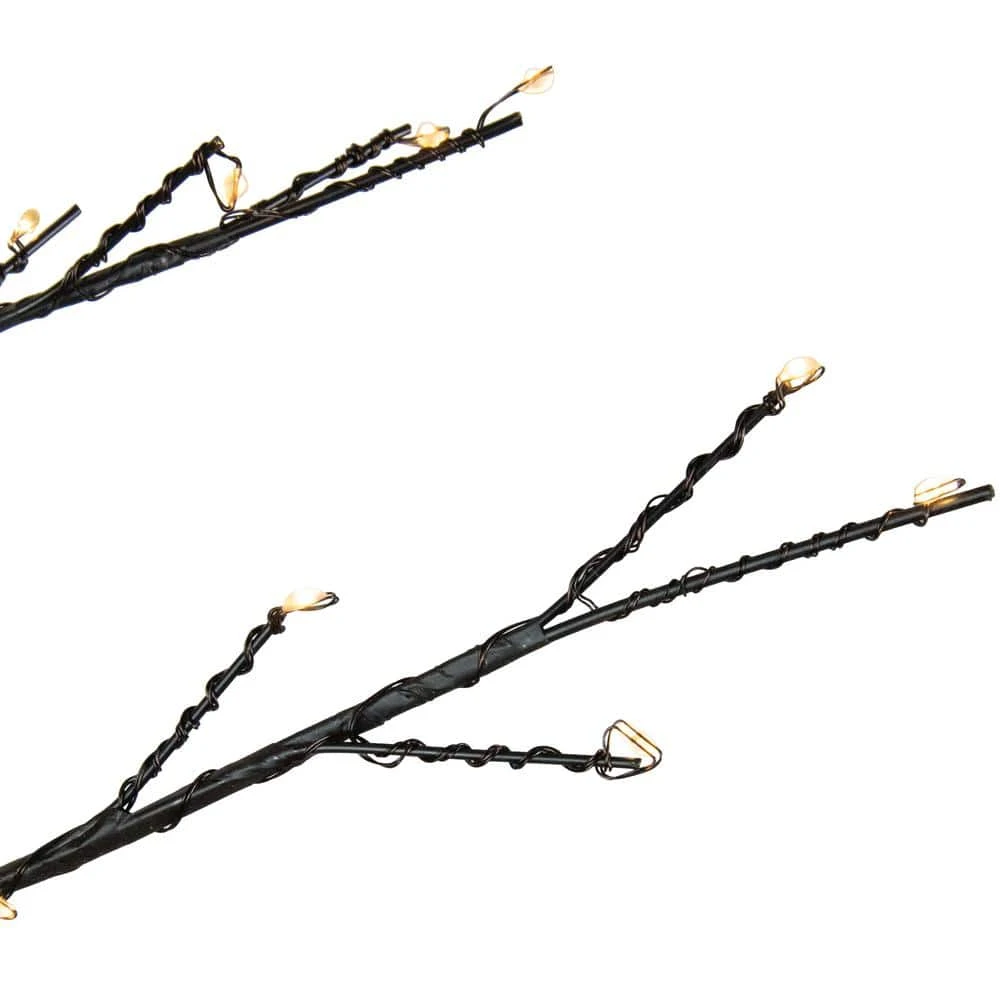Create a perfect winter wonderland this holiday season. This black flat-styled tree is perfect to light up your indoor or outdoor decor featuring warm white LED copper wire string lights. This show-stopping perfect masterpiece will surely catch attention wherever it is placed. Great for adding a dazzling glow to seasonal or special occasion decorating. . Product Features: Black flat tree decoration. Pre-lit with 600 warm white lights. Bulb size: concave wide angle. Bulb type: cooper wire LED string lights. Branches are bendable to help accommodate your decorating needs. 7 ft. black lead cord. Includes round black tree stand. Light assembly required. UL certified and approved for indoor or outdoor use. Additional Product Features: LED bulbs use 90% less energy. 3-piece easy assembly (including stand). AC adapter included. Input: 120-Volt 60 hertz 0.22 Amp. Output: 4.5-Volt 3.6-Watt. Class 2 transformer (rainproof). Ground stakes are not required. Cannot be connected with other lighted items. Dimensions: 84 in. H x 26 in. W x 26 in. D. Material(s): copper wire/metal.