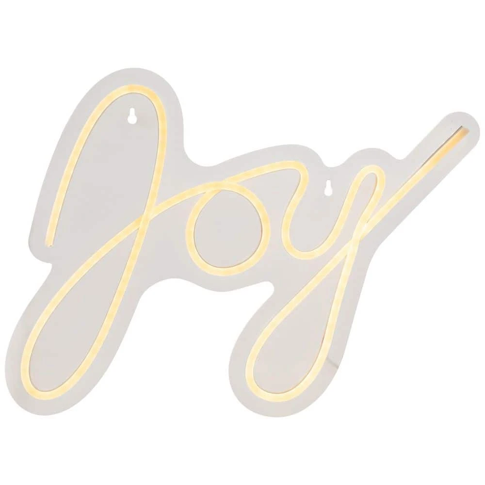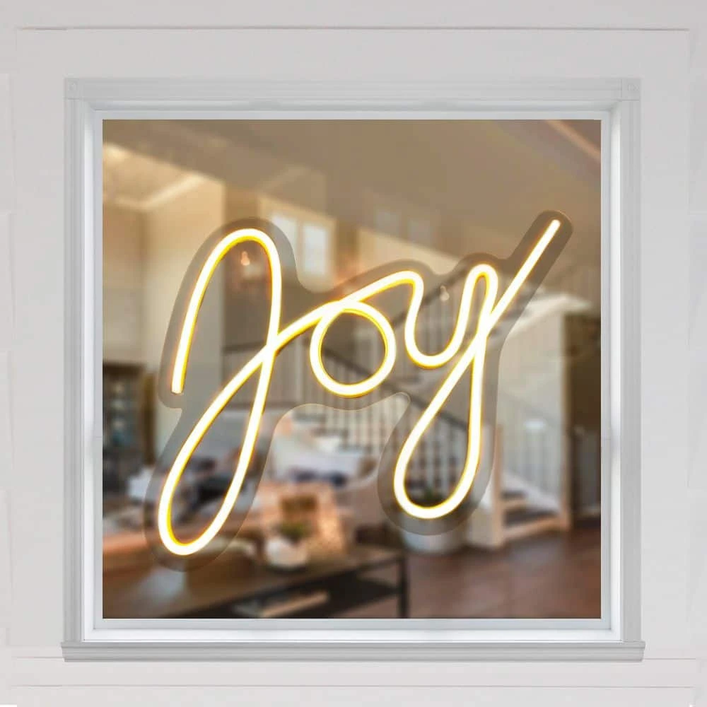 - Joy in neon script letters