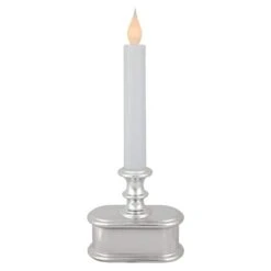 Bring a charming touch to your windows with these battery operated window candles. This set of 4 includes white candles with a silver base designed to add a soft glow to your home. Each candle features a frosted LED C5 bulb that mimics the warm glow of a traditional candle creating a cozy atmosphere in any room. With an automatic timer the candles turn on for 8 hours and off for 16 hours offering effortless convenience. Perfect for the holiday season these battery operated Christmas window candles are ideal for showcasing on windowsills adding a beautiful glow to your Christmas decor. These window candles are also a simple and stylish option for year-round use providing a timeless charm wherever they are placed. Product Features: Set of 4 single light Christmas candles. White candles with silver base. Frosted LED bulb. Bulb size: C5. Battery operated. Each candle requires 2