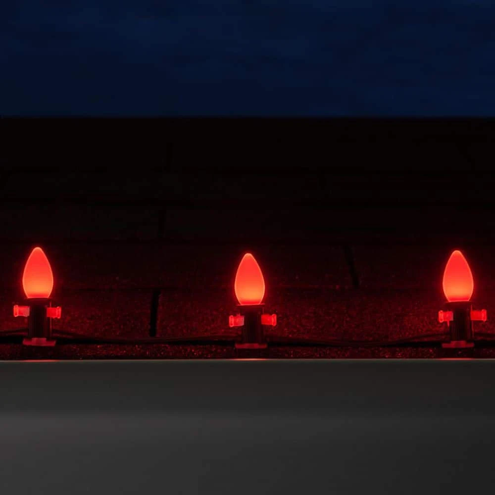 - Box of 25 C7 red smooth/opaque OptiCore LED Christmas light bulbs, E12 (candelabra) base; fits any standard C7/E12 sized stringer socket