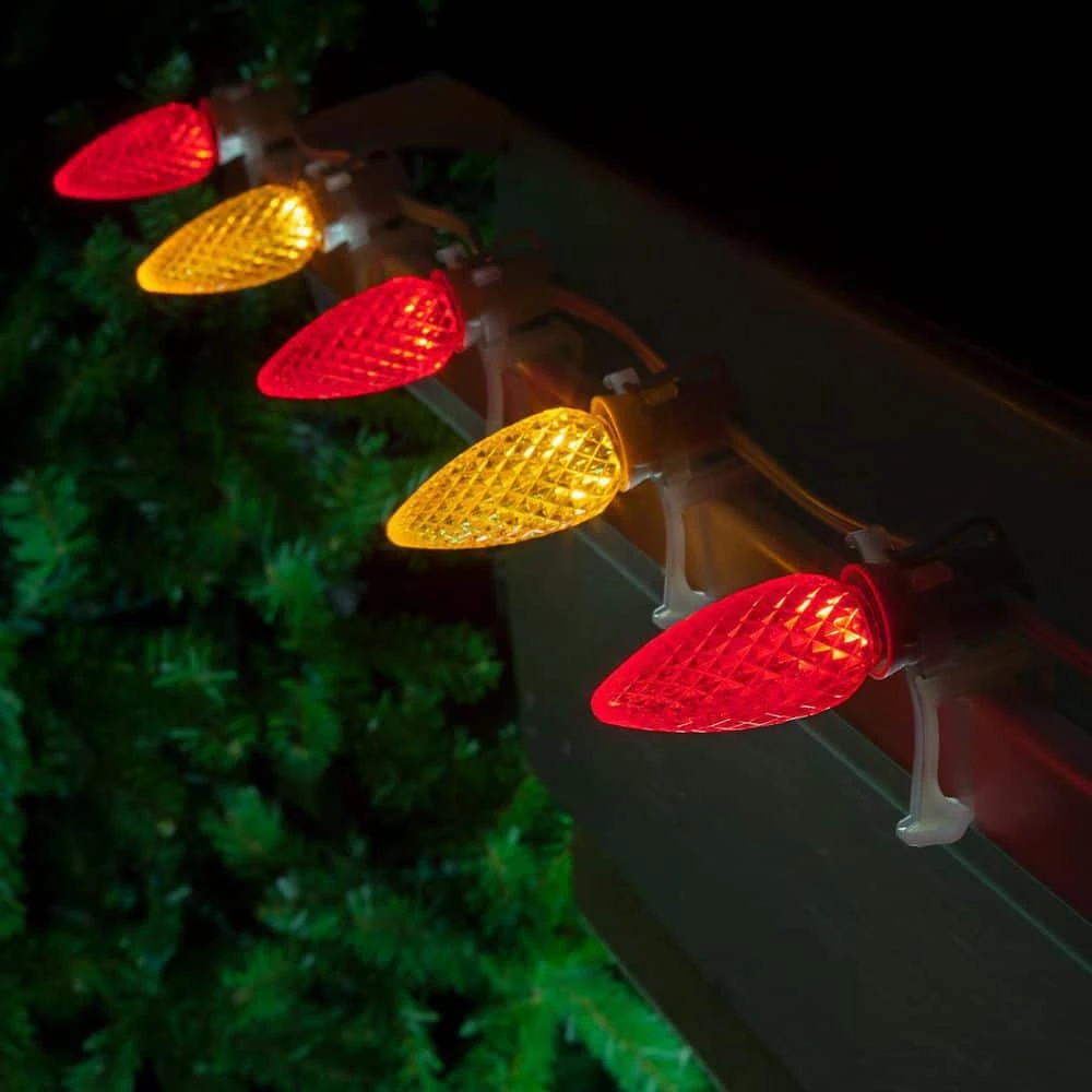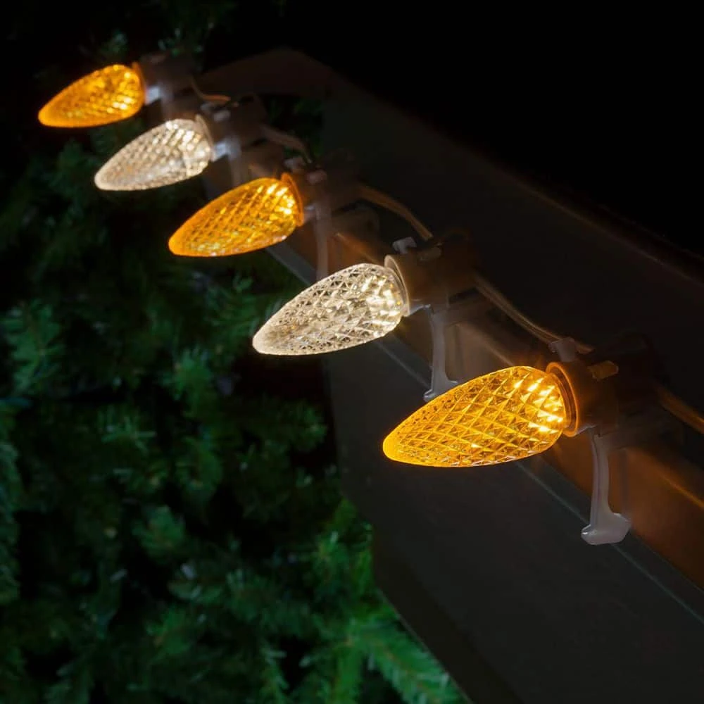 - Box of 25 C9 gold faceted OptiCore LED Christmas light bulbs, E17 base; fits any standard C9/E17 stringer socket