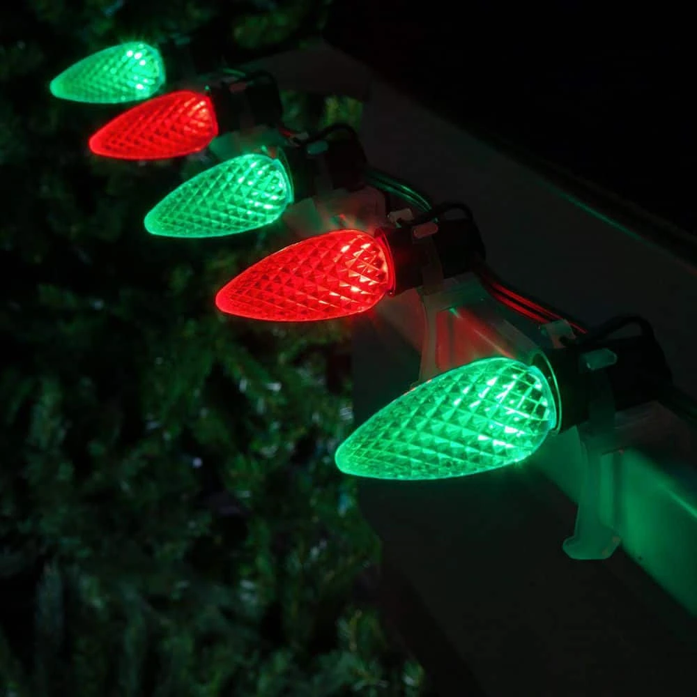 - Box of 25 C9 red faceted OptiCore LED Christmas light bulbs, E17 base; fits any standard C9/E17 stringer socket