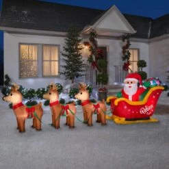 Home Accents Holiday 5 Ft. H X 14 Ft. L Airblown Inflatable Santa In Sleigh Scene