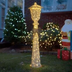 5 Ft. Christmas Lamp Post Tree Stand Pre Lit Xmas Outdoor Porch Decor Clear Lights