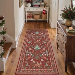 Christmas 8 Ft. X 10 Ft. Red/Green Elk Snowman Christmas Tree Area Rug