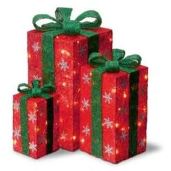 Northlight Lighted Tall Red Sisal Gift Boxes Christmas Yard Art Decorations (Set Of 3)