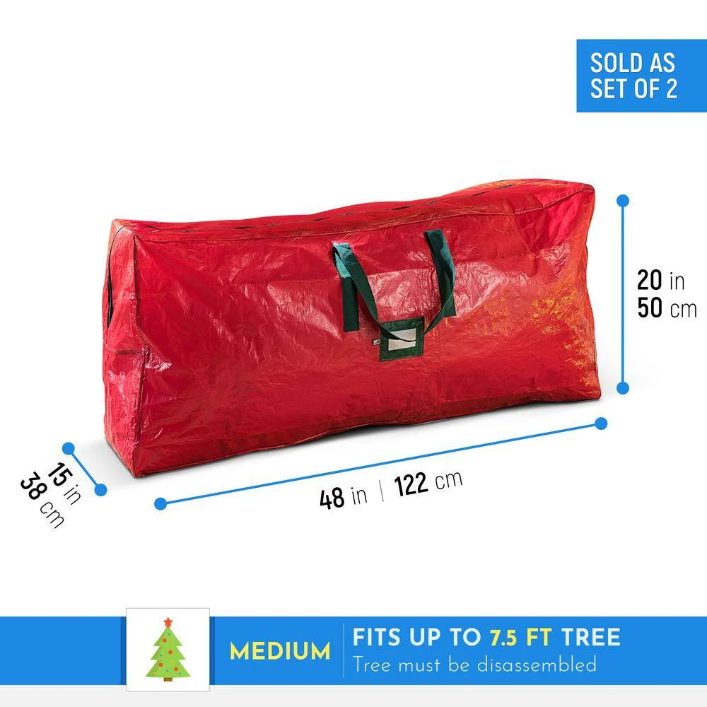- Tree storage-pack of 2 supports disassembled trees of up to 7.5 ft. tall, this tree storage container comes with reinforced shoulder straps, dual zipper, and a name tag, dimensions: 48 in. x 15 in. x 20 in.