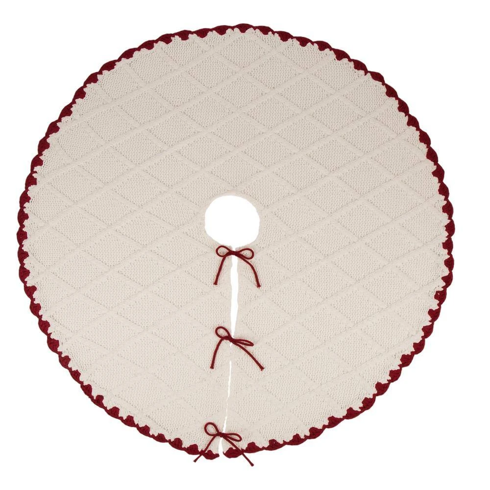 Knitted polyester white Christmas decoration group including 1 tree skirt and 2 stocking well matched with each other. This classic group makes for the perfect decor at Christmas time, have yourself a warm and white Christmas. Spot clean with mild detergent do not wash.