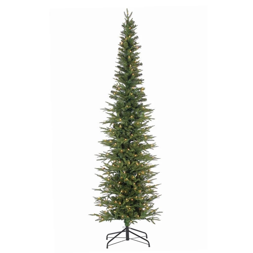 Create an authentic living Christmas tree look in your home without the mess. This wonderful Natural Cut Narrow Lincoln Pine tree includes 1983 tips and is intertwined with over 300 clear warm white lights for a soft glow to illuminate your holiday decor. This tree stands at 7.5 ft. tall, and has a base width of 30 in. making it ideal for space saving in small homes, apartments, and lobby’s. It stands ready to proudly display your favorite ornaments and heirlooms. A sturdy stand comes with this tree, but securing it in a decorative base would give you year round decor. Bring a bit of the outdoors, inside with this marvelously layered tree, ready to be surrounded by presents from Santa.