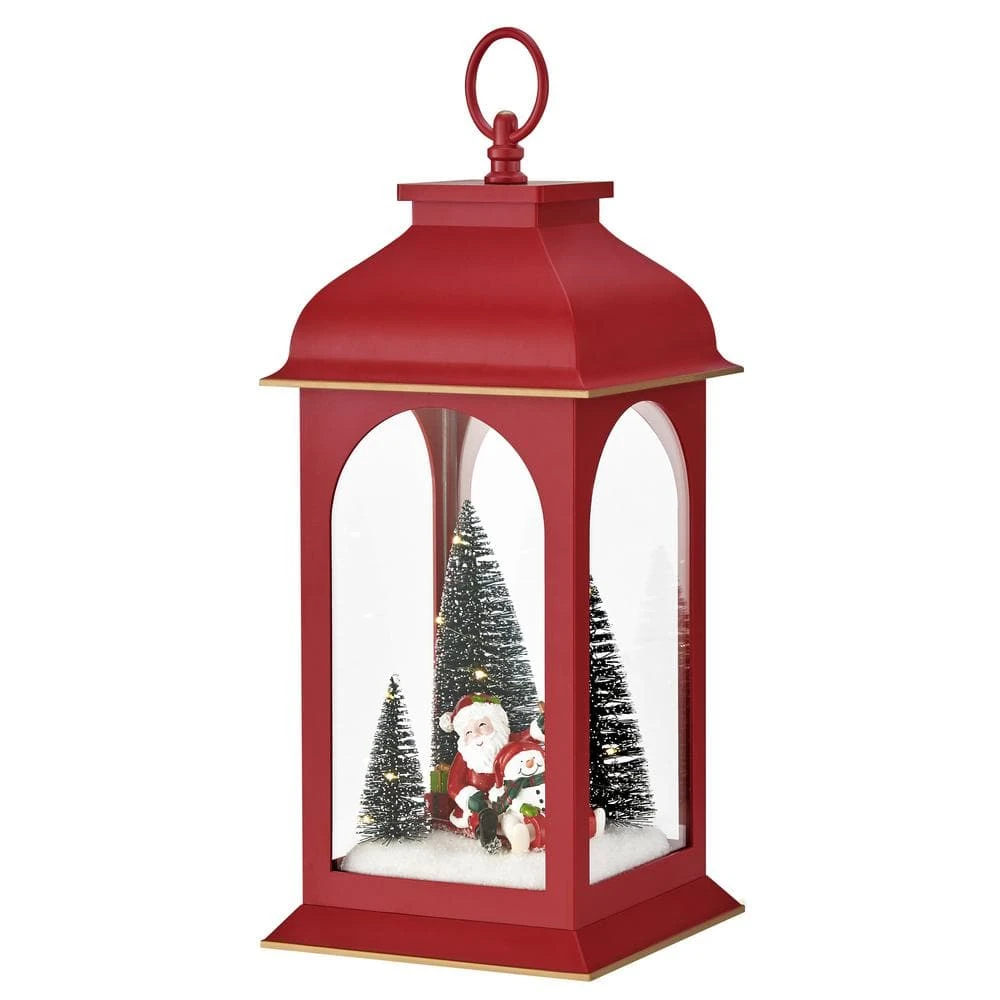 Illuminate your home with the enchanting glow of the DANYA B. Red Lighted Diorama Lantern. This intricate lantern captures the magic of the holiday season, making it the perfect addition to your mantel, tabletop, shelf, or windowsill. Utilizing a charming and festive red finish, this timeless lantern is sure to be a staple for holidays year after year. This unique diorama lantern features a whimsical diorama scene, delicately lit from within, depicting timeless holiday moments that evoke warmth and nostalgia. Designed with a blend of traditional charm and modern elegance, this lantern seamlessly complements any holiday decor, from traditional to contemporary. Ideal for creating a cozy atmosphere during the holiday season, this diorama scene lantern also makes a thoughtful gift for loved ones. Its compact size and lightweight design makes the lighted lantern easy to display on shelves, end tables, or even hung on any wall of your home. With its soft light and elegant Christmas scene, this lantern is sure to bring a touch of holiday magic to any room. This red lantern is available in 2-sizes with slightly varied scenes. The small lantern depicts 2-snowmen decorating trees, while the large lantern depicts Santa and a snowman decorating trees. These distinct dioramas can be easily paired together to maximize the holiday spirit on any table or bookshelf. Embrace the festive cheer this winter with the DANYA B. Diorama Lantern.
